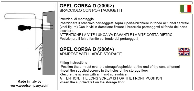 This product is designed and manufactured specifically for this car model; it is not a universal armrest. It is entirely made in Italy by expert craftsmen, using only high-quality materials.
