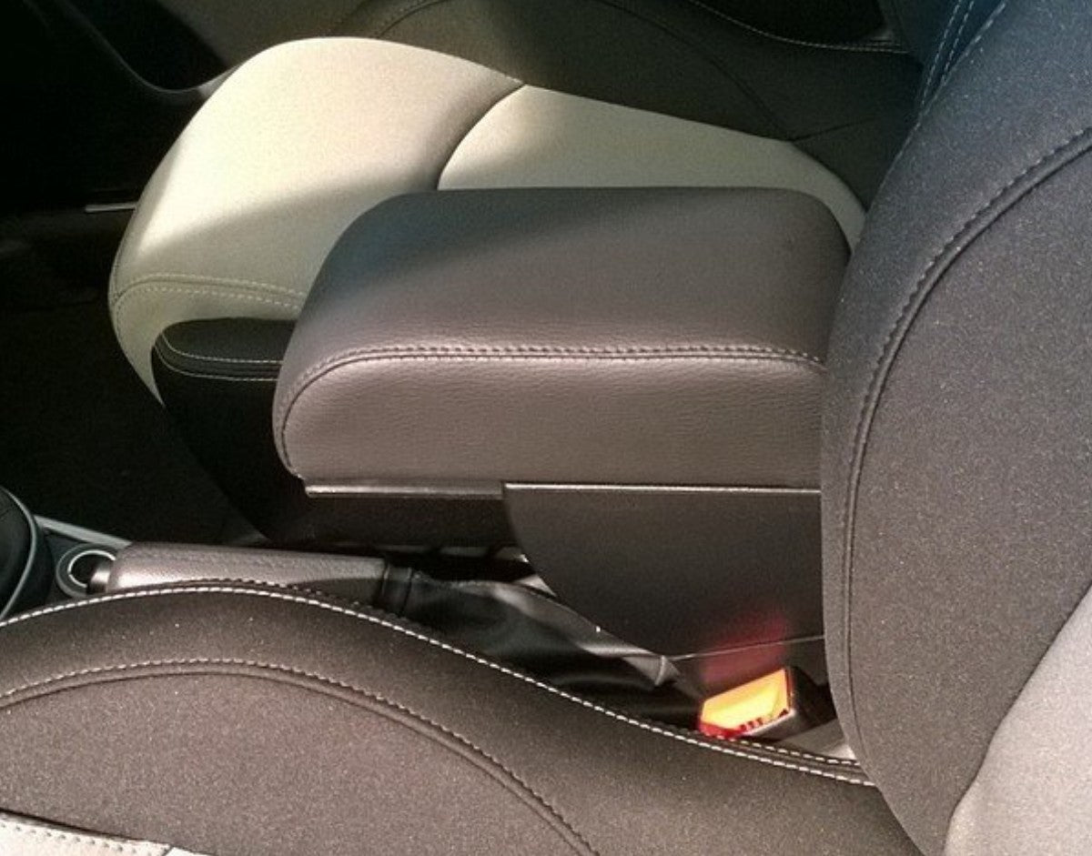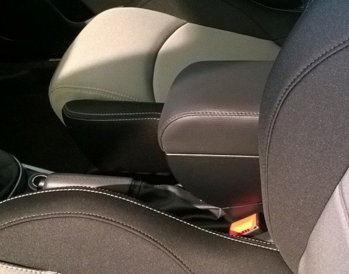 Length-adjustable and foldable armrest for Alfa Romeo Mito (2014>). Equipped with a spacious storage compartment and a soft pad. Sliding the pad forward reveals the storage compartment underneath (see photo in the gallery). Inside the storage compartment is a convenient cup holder insert.