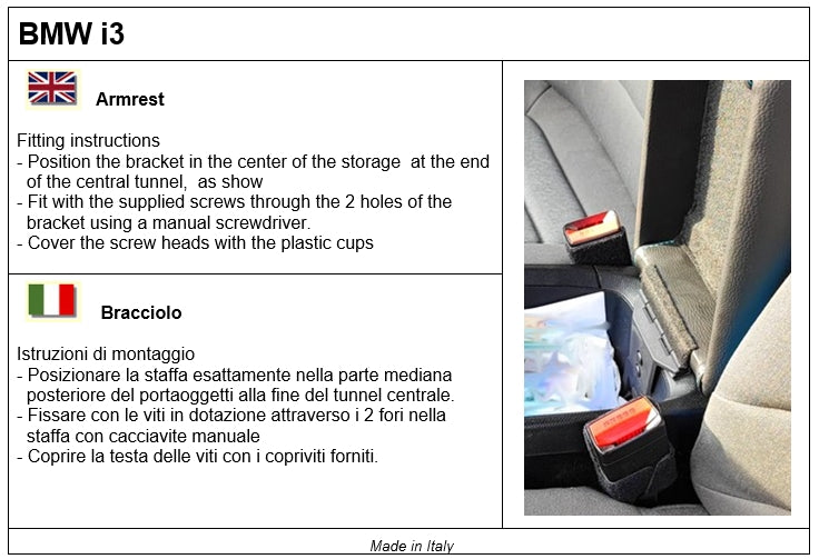 This product is designed and manufactured specifically for this car model; it is not a universal armrest. It is entirely made in Italy by expert craftsmen, using only high-quality materials.