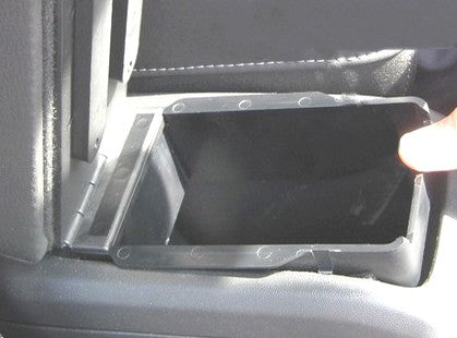 The armrest lifts up (flips up), allowing access to the original storage compartment on the car's console. The great advantage of our armrest is that it rests on a large portion of the center console. This allows the armrest to support weight without risk of structural damage, unlike "cantilever" models which tend to break due to stress.