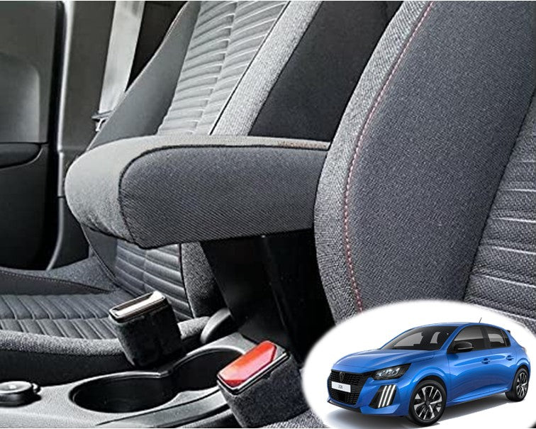 Length-adjustable armrest specifically for Peugeot 208 (03/2019>) with installation in “ORIGINAL POINTS” (using fixing points already present on the central tunnel, avoiding damaging it by drilling new holes.