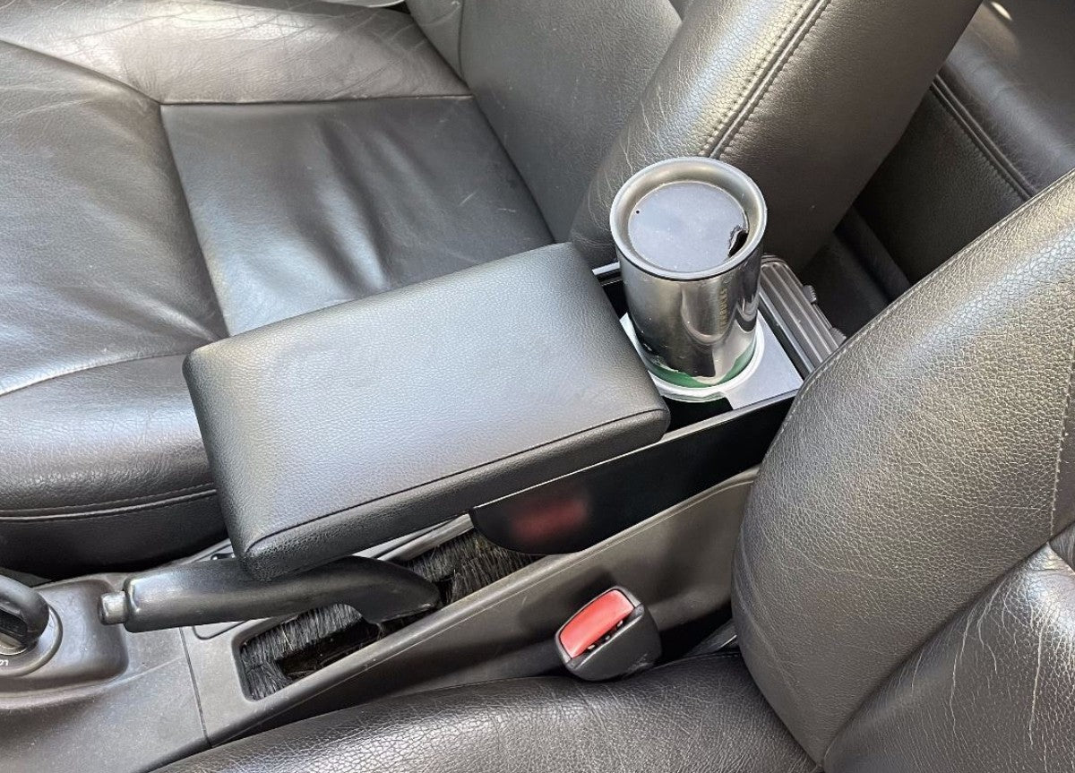Length-adjustable and foldable armrest for Saab 9.3 (1997-2003) and 900S-SE (1994-1998). Equipped with a spacious storage compartment and a soft pad. Sliding the cushion forward reveals the storage compartment underneath (see photo in the gallery). Inside the storage compartment is a convenient cup holder.
