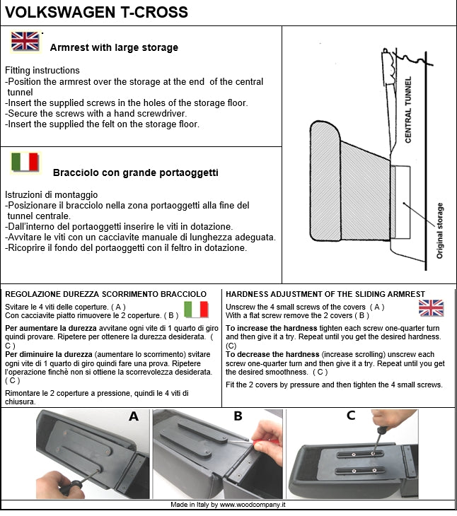 This product is designed and manufactured specifically for this car model; it is not a universal armrest. It is entirely made in Italy by expert craftsmen, using only high-quality materials.
