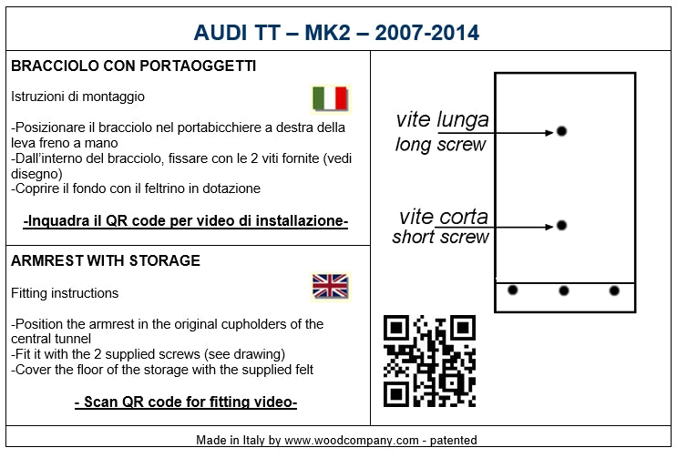 This product is designed and manufactured specifically for this car model; it is not a universal armrest. It is entirely made in Italy by expert craftsmen, using only high-quality materials.