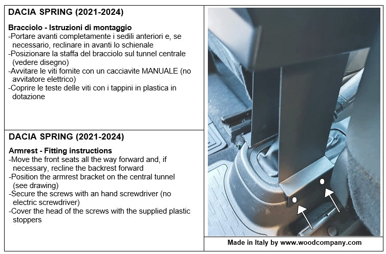 This product is designed and manufactured specifically for this car model; it is not a universal armrest. It is entirely made in Italy by expert craftsmen, using only high-quality materials.