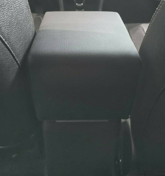 The armrest lifts up (flips up) allowing access to the original storage compartment present on the central tunnel of the car.