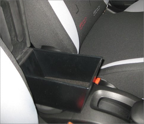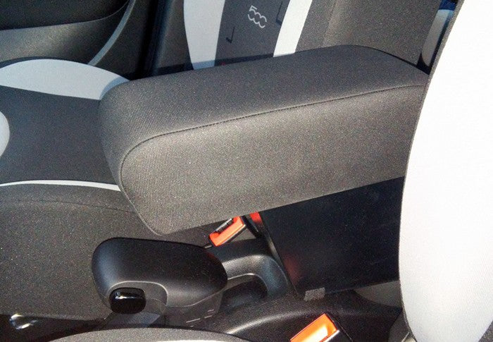 Length-adjustable armrest specifically for Fiat 500L (2012-05/2017) with a "PLUG-IN" interlocking installation (without screws, avoiding damaging the car by drilling nee holes).