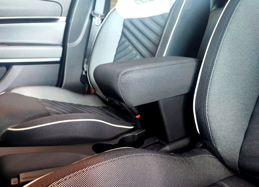 Length-adjustable armrest specifically for Fiat 600 Hybrid with installation in “ORIGINAL POINTS” (using fixing points already present on the central tunnel, avoiding damaging it by drilling new holes.