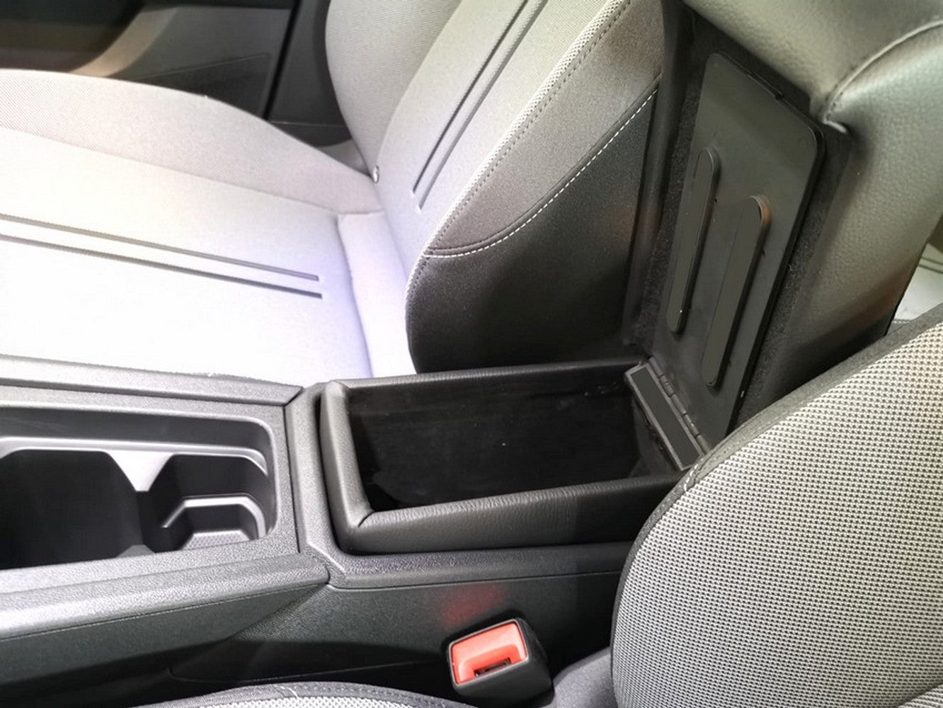 Length-adjustable armrest specifically for Seat Leon (2020>). "PLUG-IN" interlocking installation (without screws, avoiding damaging the car by drilling holes).